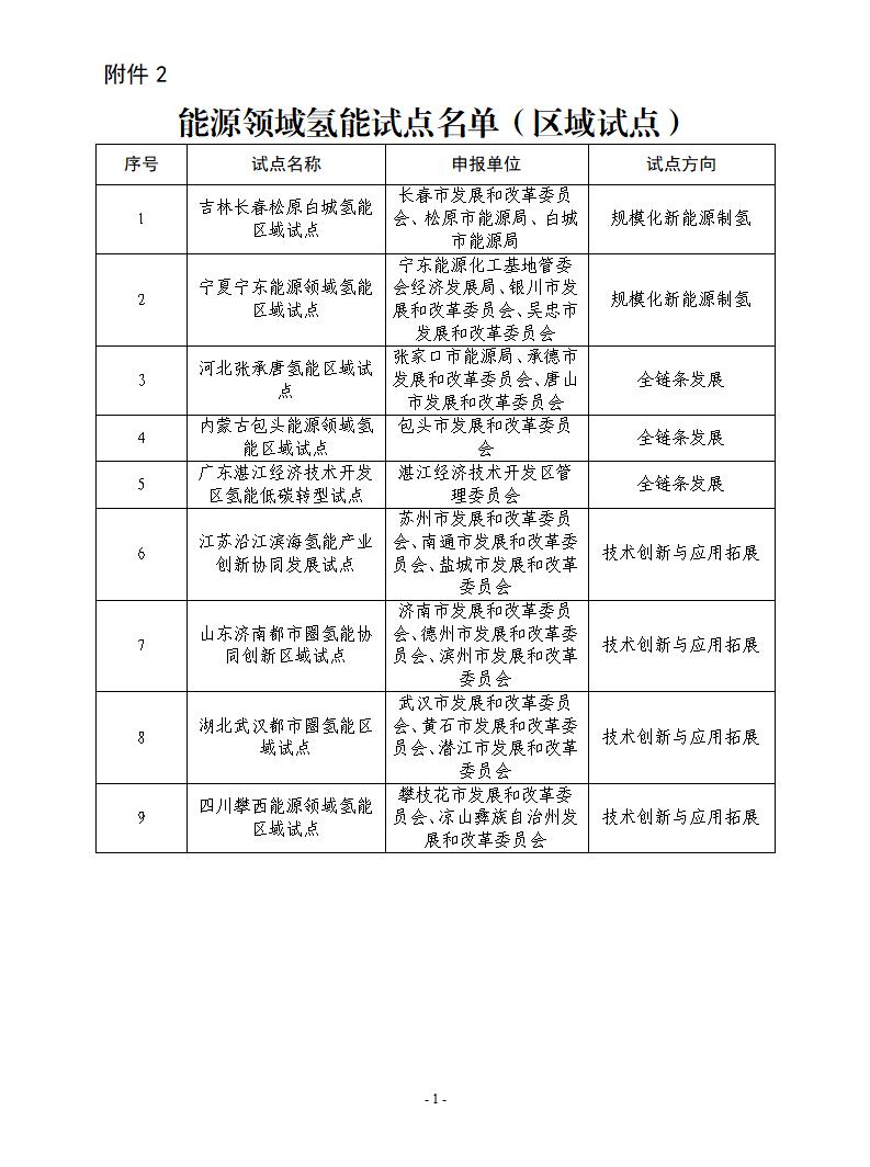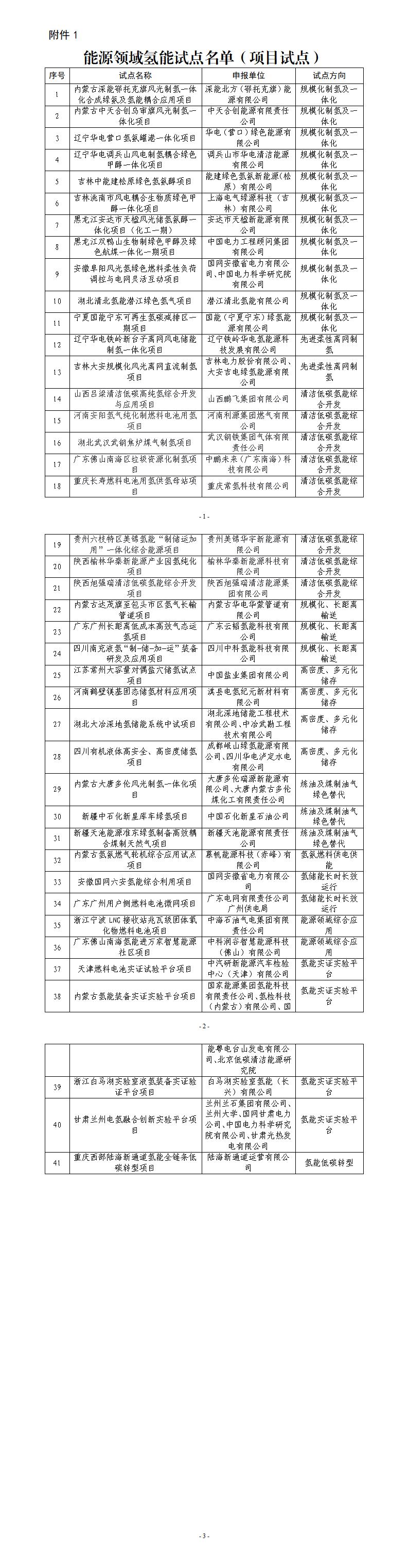 国家能源局综合司关于公示能源领域氢能试点(第一批)的通知